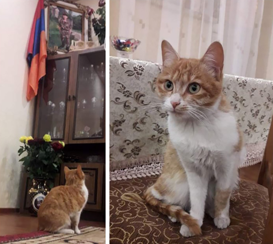 Դավթյանների տանը նոյեմբերի 15-ից սկսել է մի անծանոթ կատու բնակվել։ Չգիտեն, թե ում կատուն է, կամ որտեղից է եկել, միայն գիտեն, որ իրենց որդու՝ Արսեն Դավթյանի մահվան լուրը իմանալու օրից դարձել է տան նոր բնակիչը։