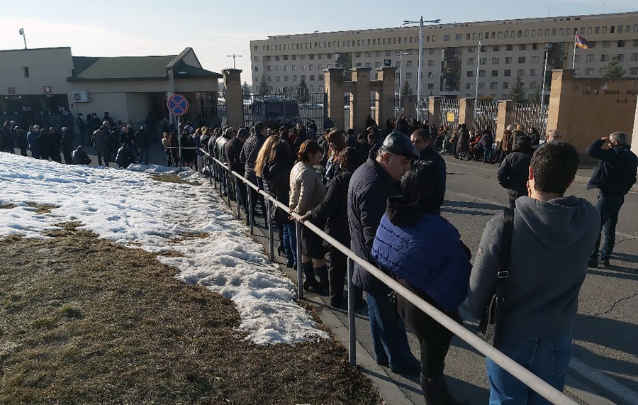Արցախյան վերջին պատերազմում անհետ կորած զինծառայողների հարազատները Պաշտպանության նախարարության դիմաց բողոքի ակցիա են անում։ Նրանք հանդիպում են պահանջում ԶՈՒ գլխավոր շտաբի պետ Օնիկ Գասպարյանի հետ: