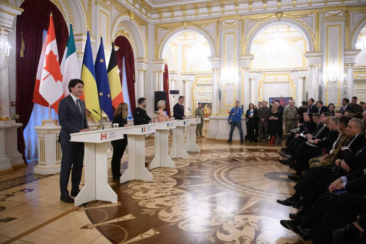 Ընդգծենք, որ Ուկրաինային օգնություն տրամադրելու մասին հայտարարել է նաեւ Կանադայի վարչապետ Ջասթին Թրյուդոն, որը նույնպես այսօր Կիեւում է։ Նա հայտարարել է, որ իր երկիրը շուտով կտրամադրի 5 միլիարդ դոլարի ֆինանսական օգնություն՝ «ֆինանսավորվող ռուսական սառեցված ակտիվներից ստացված միջոցներով»: Բացի այդ՝ Թրյուդոն հավելել է, որ Կանադան Ուկրաինային կմատակարարի 25 LAV III հետեւակի մարտական մեքենաներ եւ F-16 կործանիչների օդաչուների պատրաստման չորս սիմուլյատորներ։